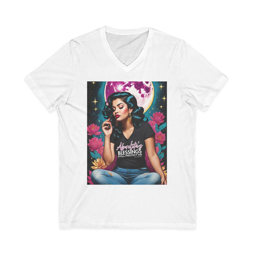 Latina Perfect Vintage Retro Glam Moonrise Babe V-Neck Tee — Confident Retro Woman Graphic Shirt -